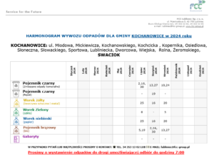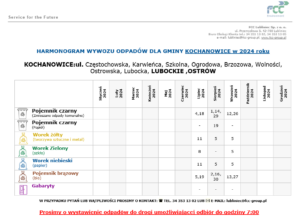 Harmonogram odbioru odpadów w okresie lipiec – wrzesień 2024 r.