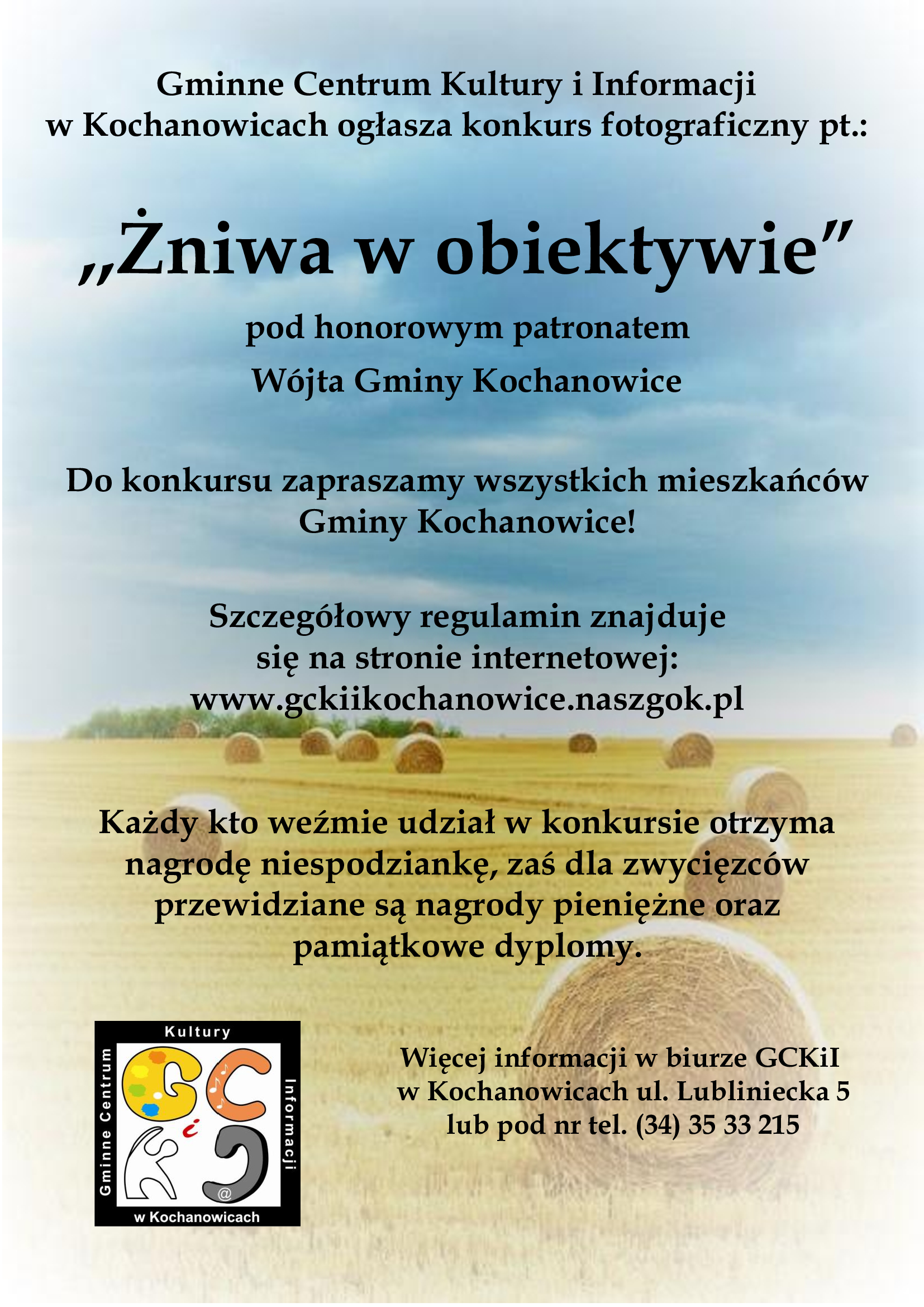 6 września 2019 - Aktualności, Dla mieszkańców, Dla turystów, Kultura, WydarzeniaWójt Gminy Kochanowice Gminne Centrum Kultury i Informacji w Kochanowicach oraz Rada Sołecka Jawornicy zapraszają na Dożynki Gminne 8 września 2019 r. w Jawornicy ul. Szkolna 3