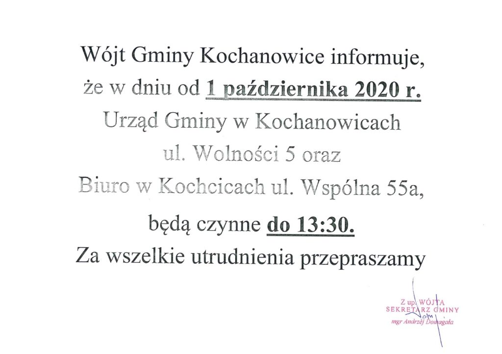 Godziny pracy w dniu 01.10.2020 r.