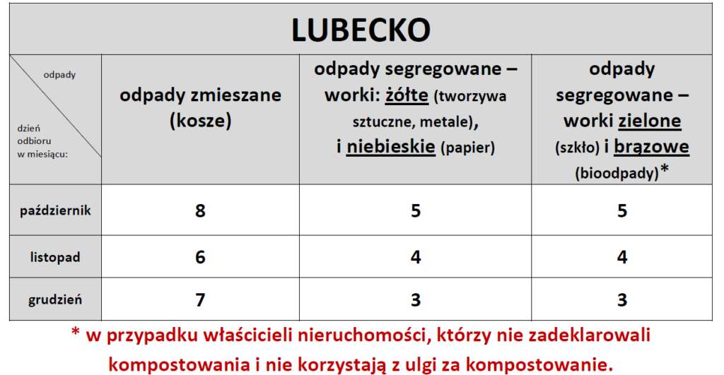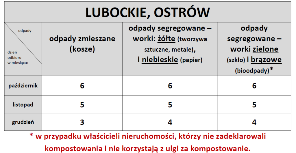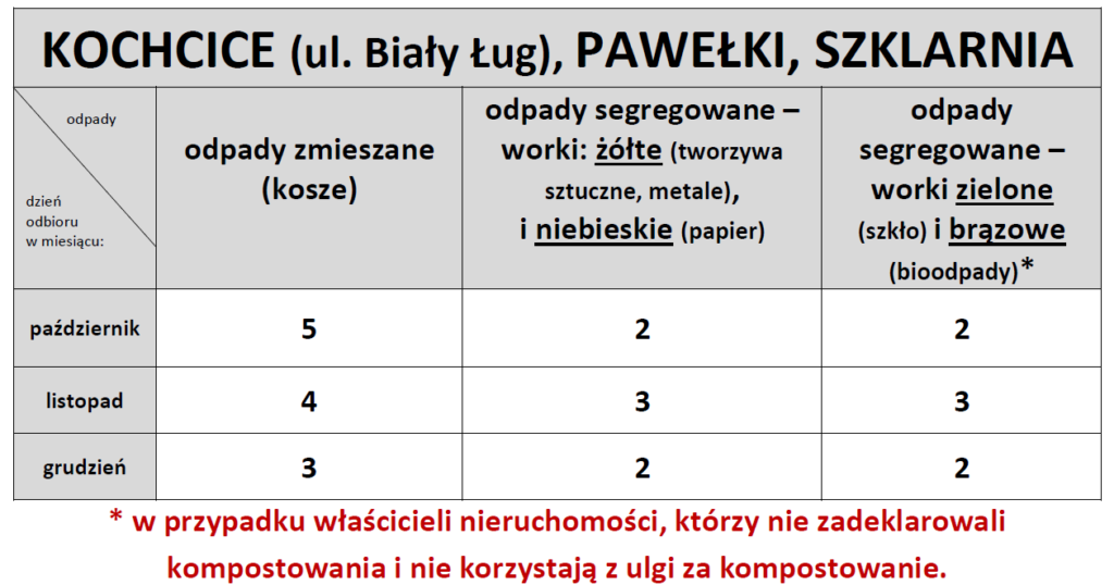Harmonogram odbioru odpadów w okresie październik – grudzień 2020r.