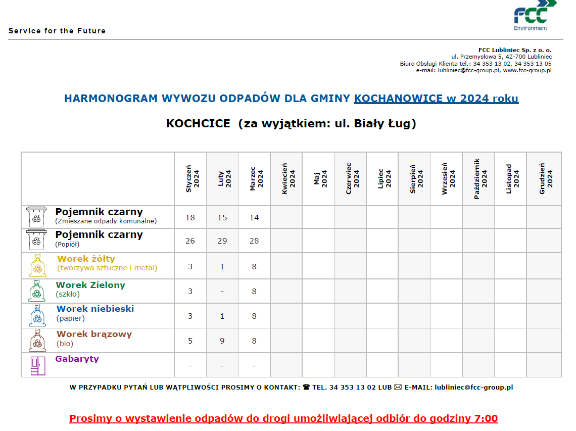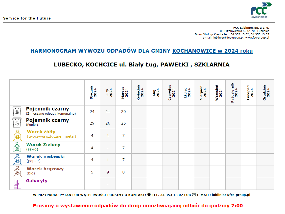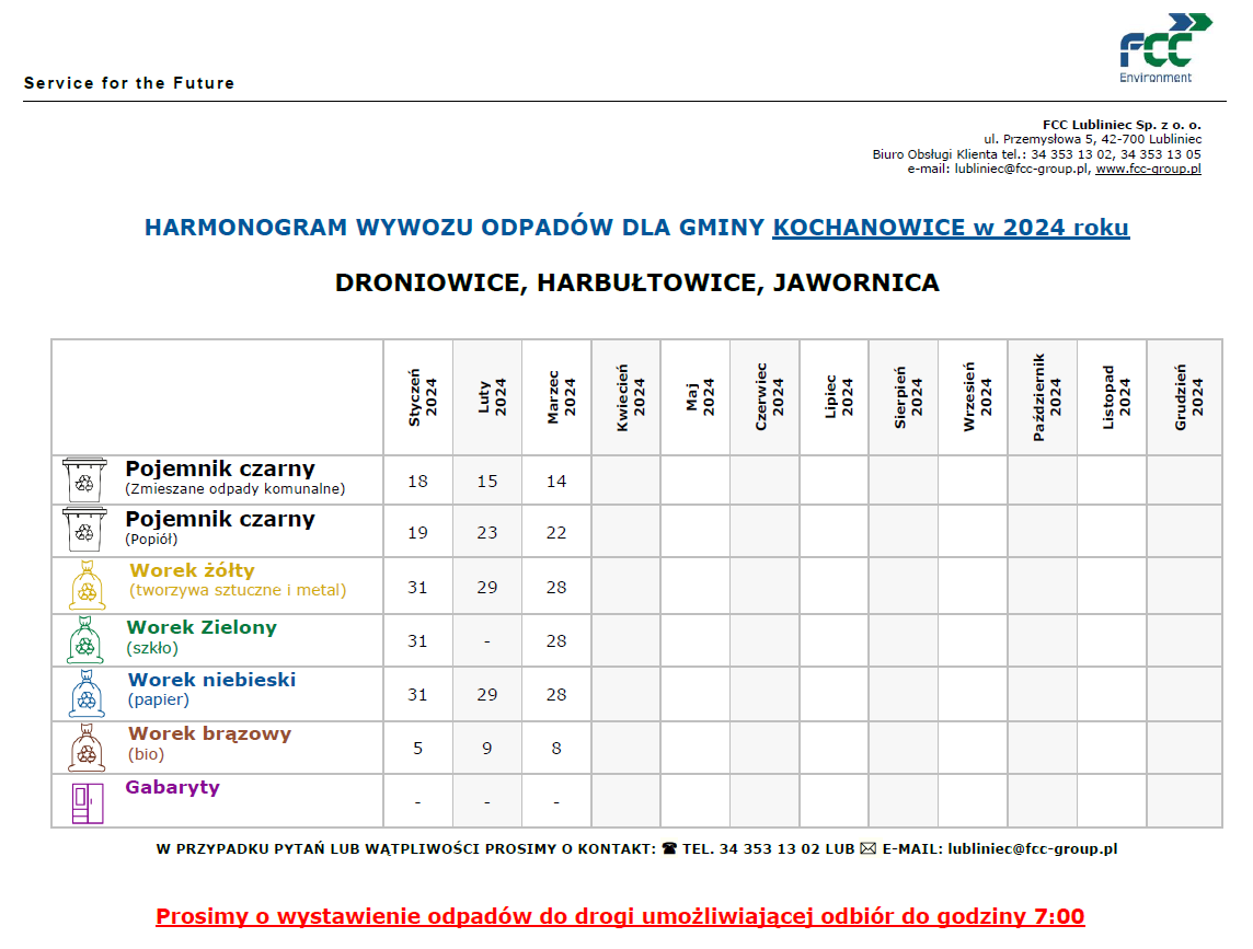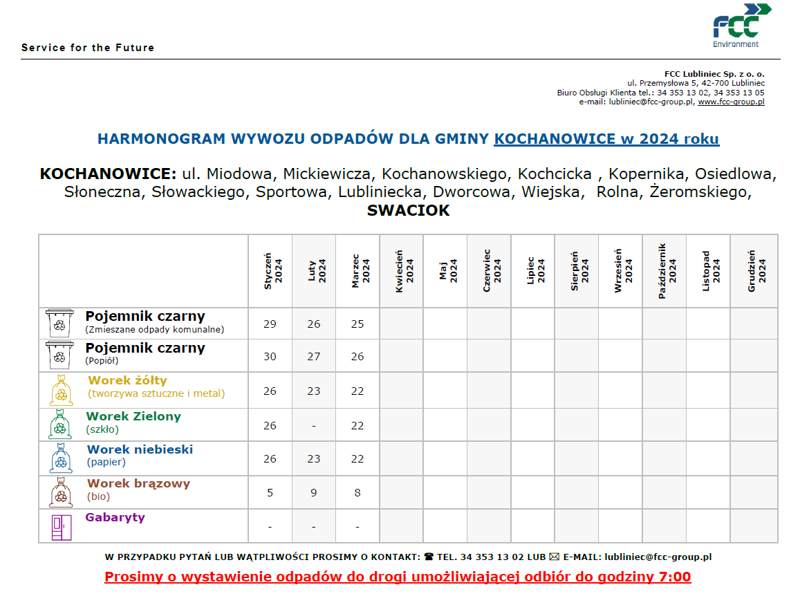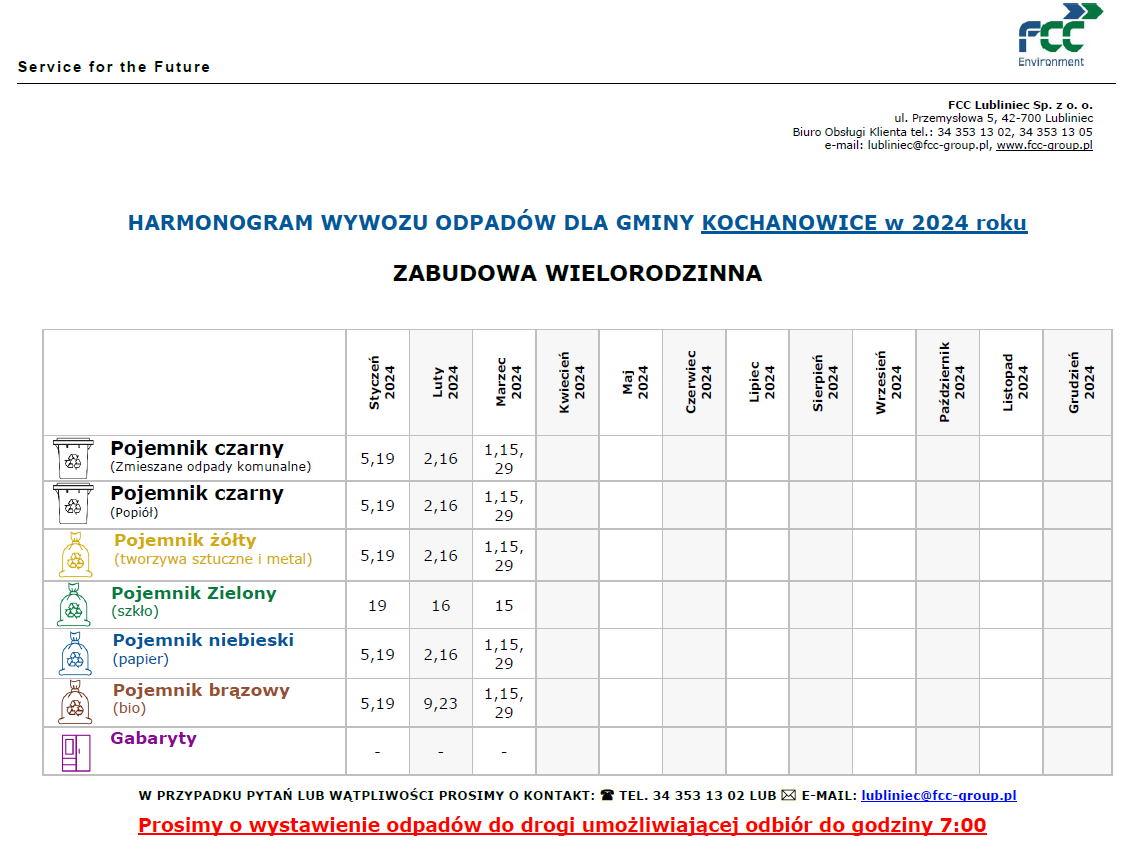 - bioodpady odbierane będą w pojemnikach (FCC Lubliniec Sp. z o.o. dostarczy odpowiednie pojemniki).