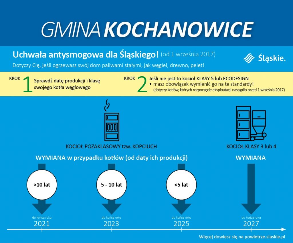 Powyższa uchwała określa standardy jakie powinna spełniać instalacja spalania paliw wraz z terminami dostosowania się do kryteriów. Termin, do którego należy wymienić kocioł ustala się w ten sposób, że należy sprawdzić, na dzień 1 września 2017 r.,  jak długo eksploatowany jest piec i określić czas jego wymiany. Pomocna w tym będzie poniższa infografika oraz przykłady: