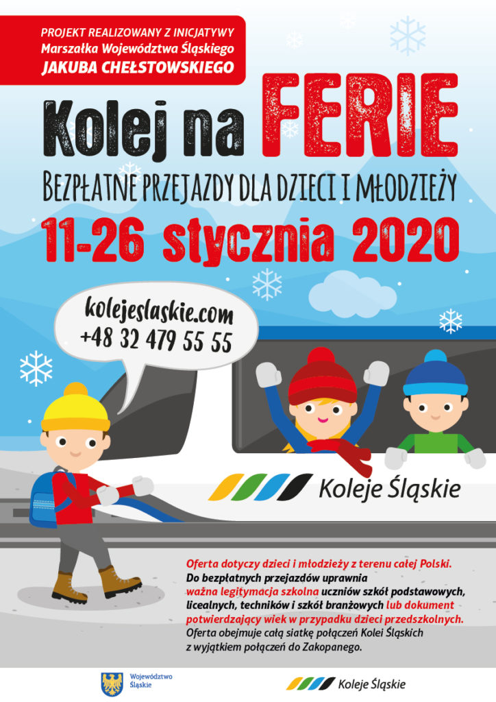 Oferta obowiązuje od 11 do 26 stycznia 2020 roku, w czasie ferii uczniów z województwa śląskiego. Zasady są analogiczne jak w roku ubiegłym. Aby móc za darmo podróżować pociągami Kolei Śląskich, wystarczy podczas kontroli zamiast biletu okazać ważną legitymację szkolną.