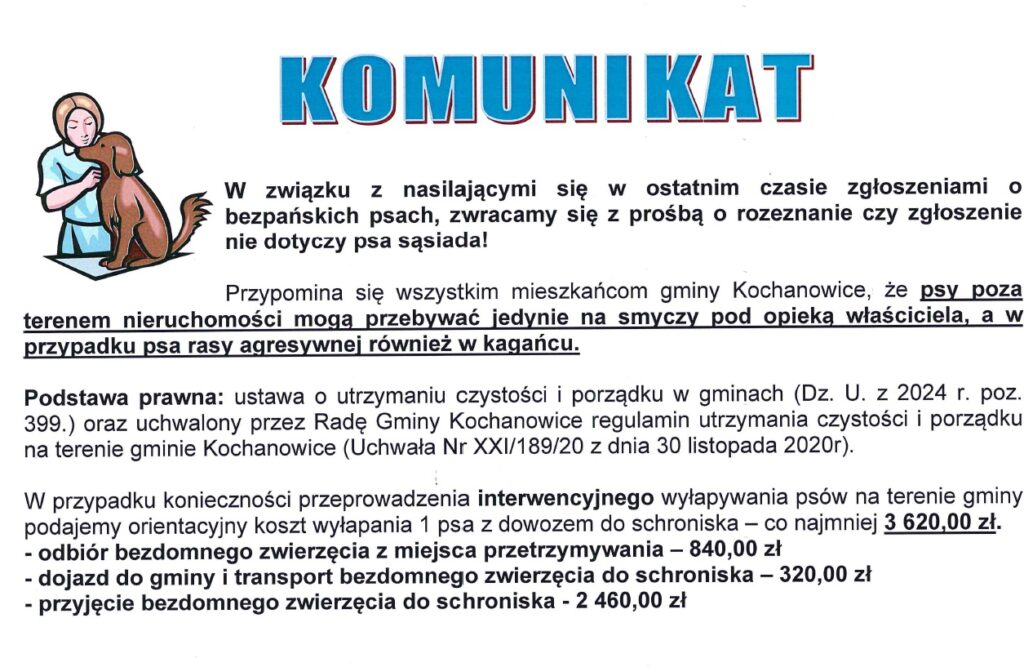 KOMUNIKAT w sprawie wyłapywania bezpańskich psów