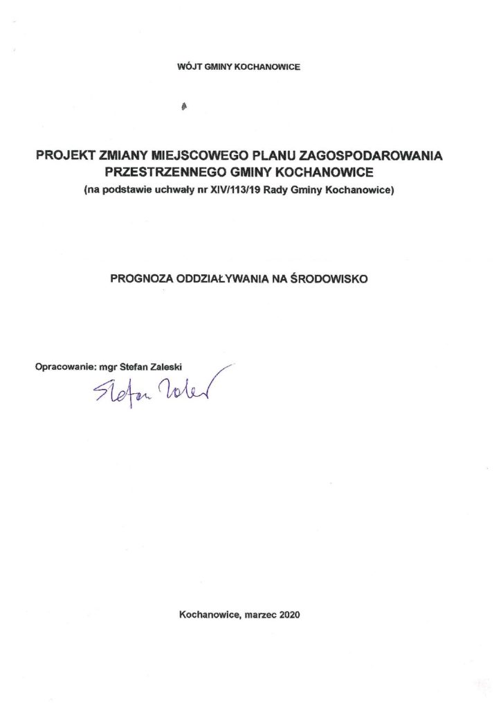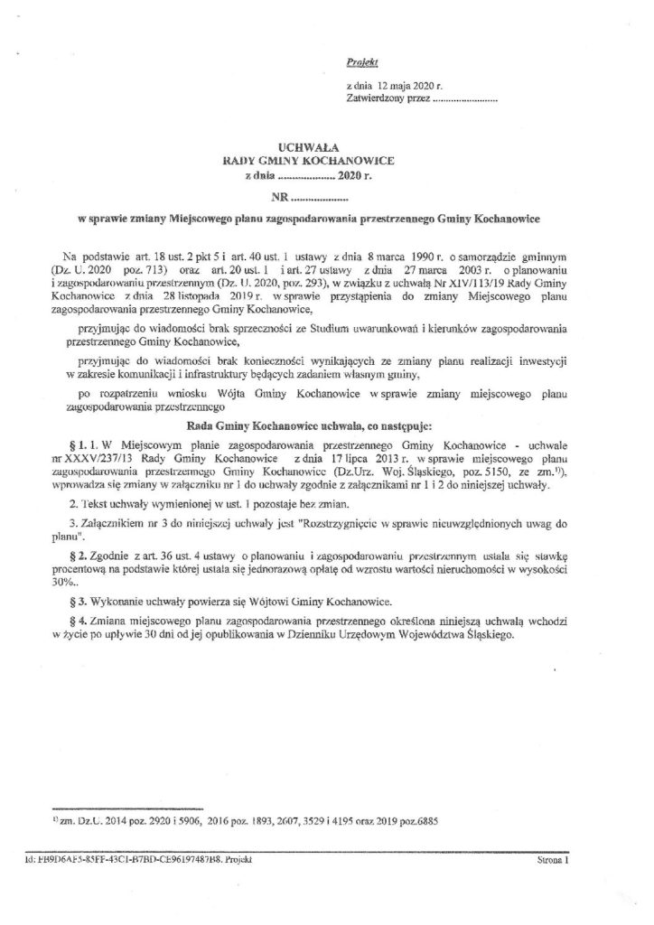 Projekt zmiany miejscowego planu zagospodarowania przestrzennego Gminy Kochanowice