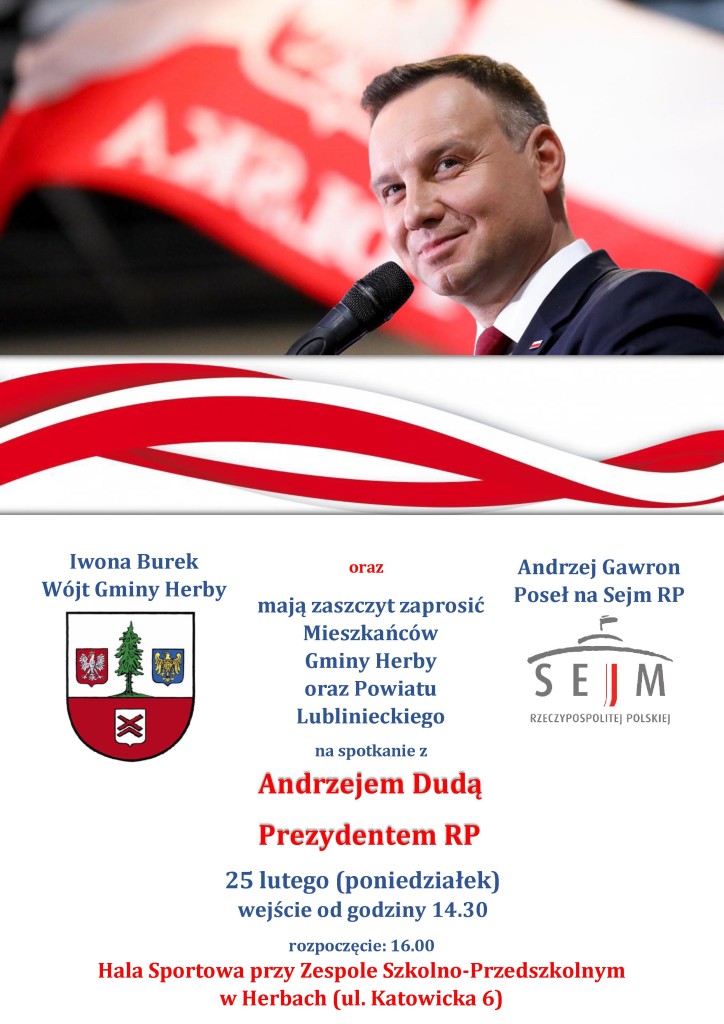 Mając na celu ułatwienie Mieszkańcom Gminy Kochanowice dojazdu na spotkanie z Prezydentem RP Panem Andrzejem Dudą w dniu 25 lutego 2019 r., które odbędzie się w miejscowości Herby, Wójt Gminy Kochanowice organizuje dowóz autobusem na miejsce spotkania.