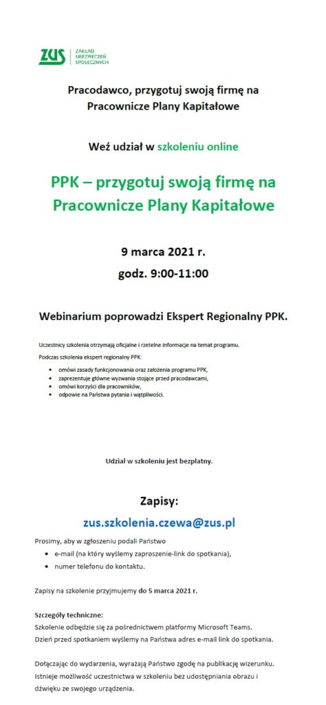 Szkolenie online dla pracodawców „PPK – przygotuj swoją firmę na Pracownicze Plany Kapitałowe”