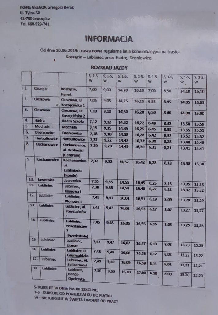 Wznowienie linii autobusowej Lubliniec – Koszęcin; Koszęcin – Lubliniec