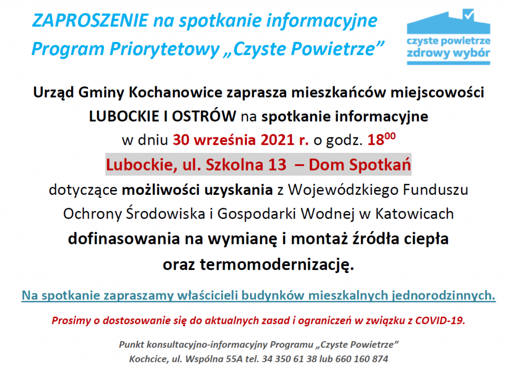 Zaproszenie na spotkania w ramach Programu „Czyste Powietrze”