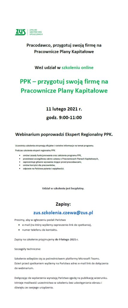 ZUS w Częstochowie – informacja o dyżurze i szkoleniu online